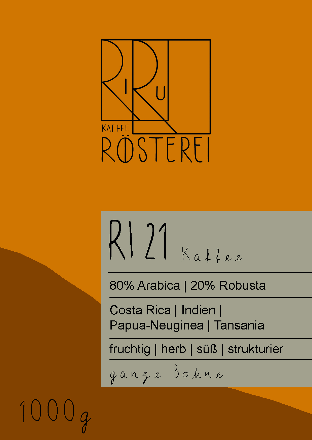 Der RI21 besteht aus 80% Arabica- und 20% Robusta-Bohnen. Er ist unser erste Kaffee-Blend und ist durch seine fruchtigen, floralen Noten und einer ausgeglichenen Säure ein echter Allrounder. Die einzelnen Herkunftsländer wie Costa Rica, Papua-Neuguinea, Tansania und Indien machen ihn unverwechselbar.
